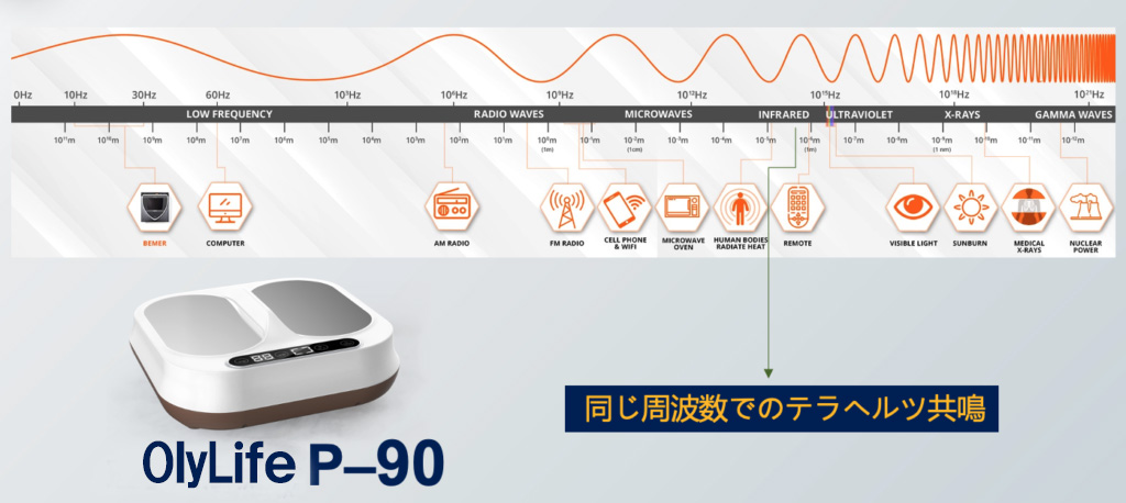 OlyLife P-90では、パルス電磁場、テラヘルツ波の2つのエネルギーが相乗効果を生み出します。